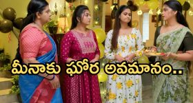 మేము తినడానికి చాలా టైం పడుతుంది వదిన గారు మీరు ఎప్పుడు తిన్నారో తినండి అని అంటుంది. భరత్ ఇంకా రాలేదు ఏంటమ్మా అని మీనాక్షి అవనీని అడుగుతుంది. భరత్ గురించి నీకు ఒక విషయం చెప్పాలమ్మా.. భరత్ పెళ్లి చేసుకున్నాడు అని అనగానే మీనాక్షి షాక్ అవుతుంది. ఎవరిని పెళ్లి చేసుకున్నాడు అని అడుగుతుంది. మరెవరో కాదమ్మా మా అత్తయ్య మామయ్య కూతురు నా మరదలు చాలా మంచి అమ్మాయి అని చెప్తుంది.